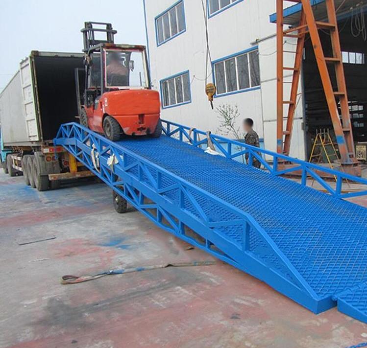 威海登車(chē)橋-威海移動(dòng)登車(chē)橋-集裝箱裝卸貨平臺(tái)-液壓裝車(chē)橋。移動(dòng)登車(chē)橋采用人工液壓動(dòng)力,不需外接動(dòng)力電源,只需單人操作,就可以實(shí)現(xiàn)貨物的安全快速裝卸,節(jié)省時(shí)間和人力資源。它可使企業(yè)減少大量勞動(dòng)力,成倍提高裝卸作業(yè)效率,加快貨物流通速度,獲取更大經(jīng)濟(jì)效益。移動(dòng)登車(chē)橋被廣泛應(yīng)用于無(wú)裝卸設(shè)備的貨臺(tái)及流動(dòng)裝卸場(chǎng)所,是與叉車(chē)配合使用的貨物裝卸輔助設(shè)備。并可以根據(jù)不同的車(chē)型及裝車(chē)過(guò)程車(chē)廂的高度變化進(jìn)行調(diào)節(jié)。廣泛應(yīng)用于工廠運(yùn)輸備料、物流集散中心運(yùn)輸貨物、港口碼頭上下集裝箱,隨著工礦企業(yè)的發(fā)展移動(dòng)式液壓登車(chē)橋越來(lái)越被廣泛的應(yīng)用到各行各業(yè)卸貨中。